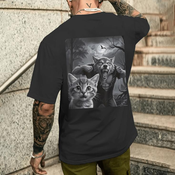 Cat Selfie Alpha Wolf Forest Cool Cat Alpha Wolf Meme Men’s T-shirt Back Print