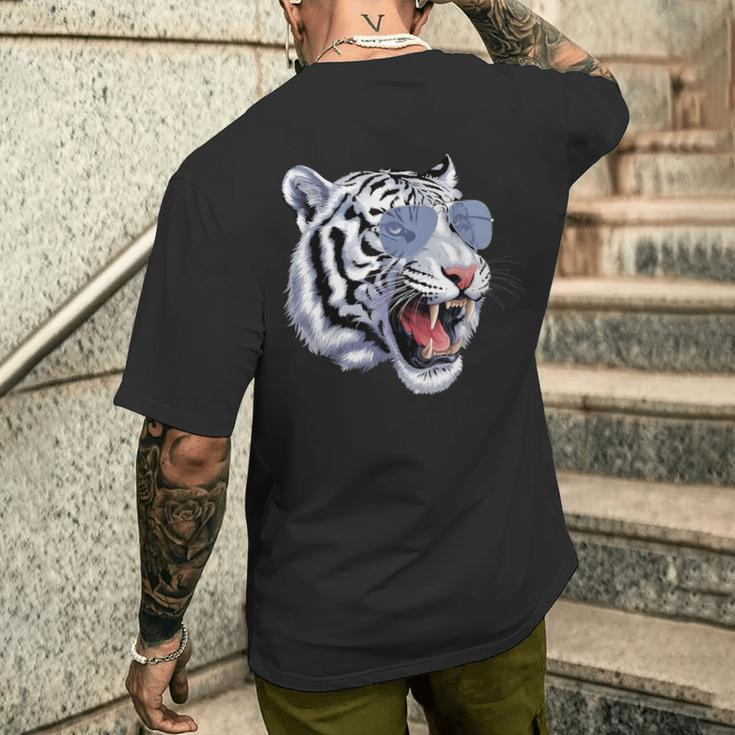 Cool Growling Bengal White Tiger With Sunglasses Men’s T-shirt Back Print