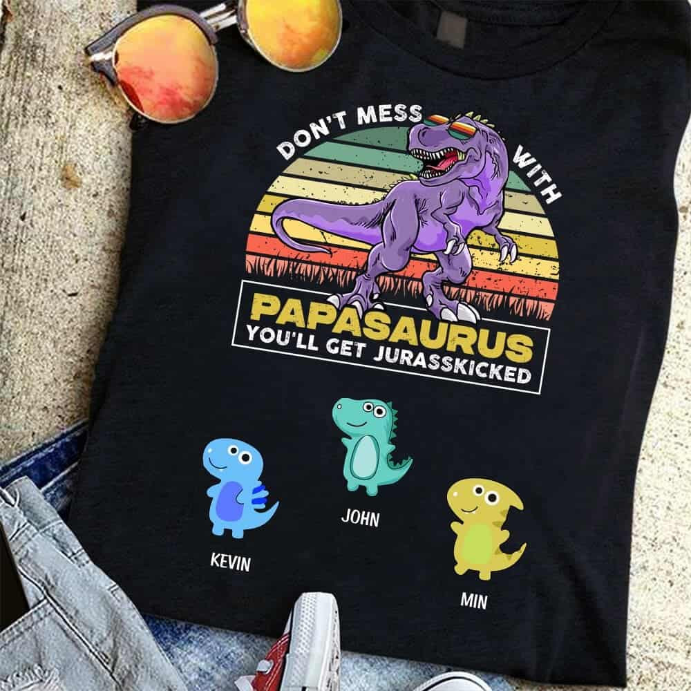 Don’t Mess With Papasaurus With Kids Personalized T Shirt, Gift For Father