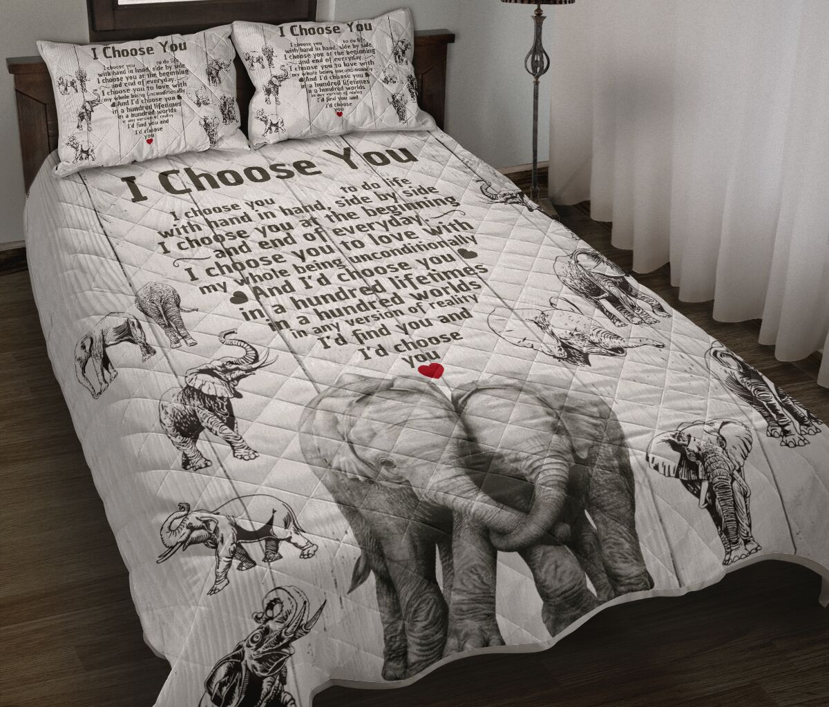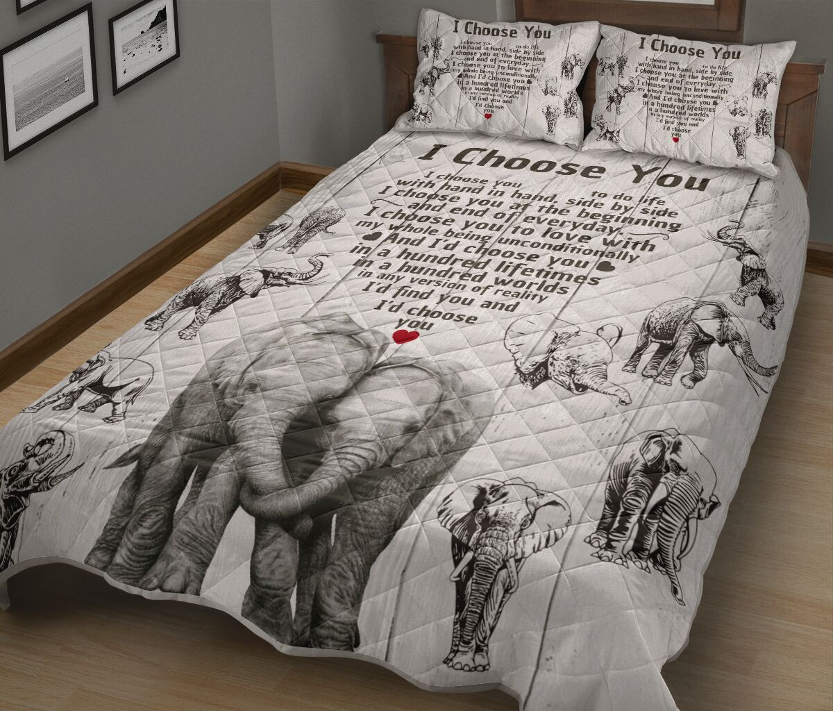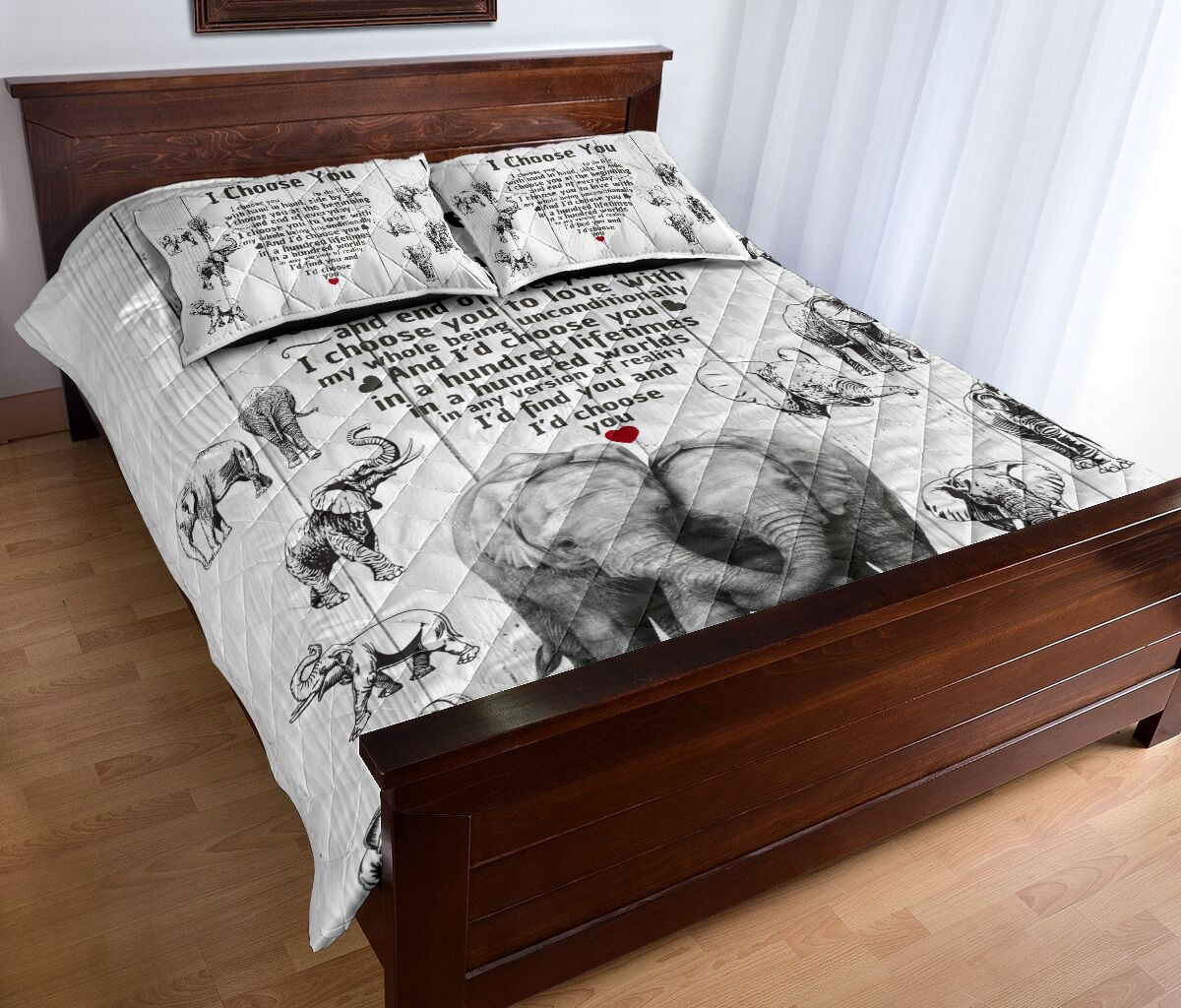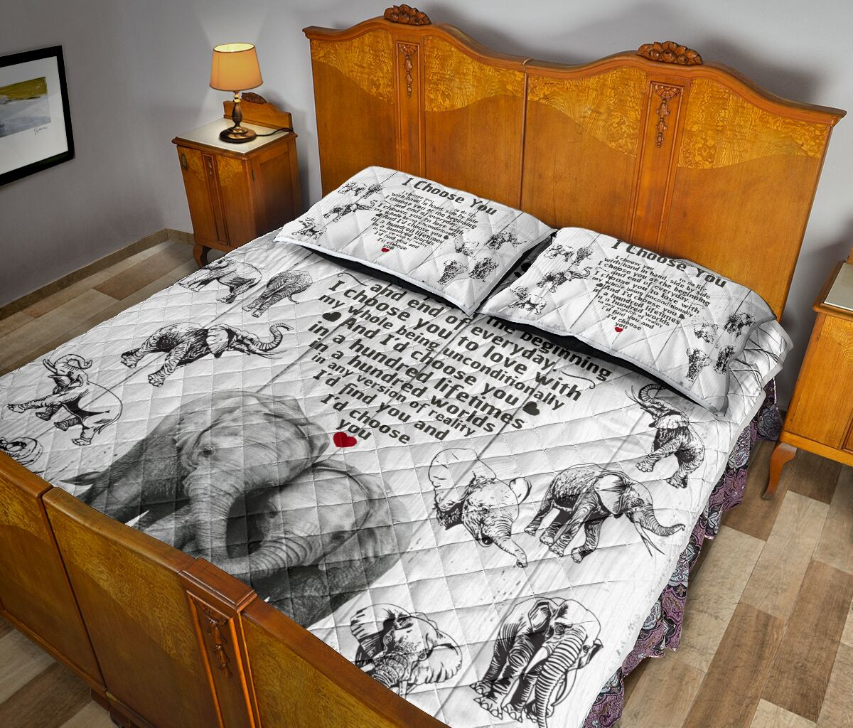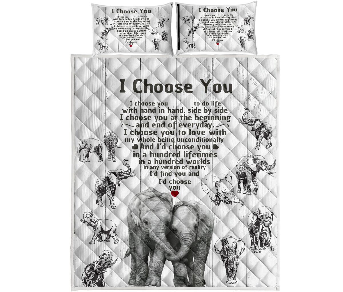 Elephant Heart I Choose You Quotes Drawn Quilt Bed Set