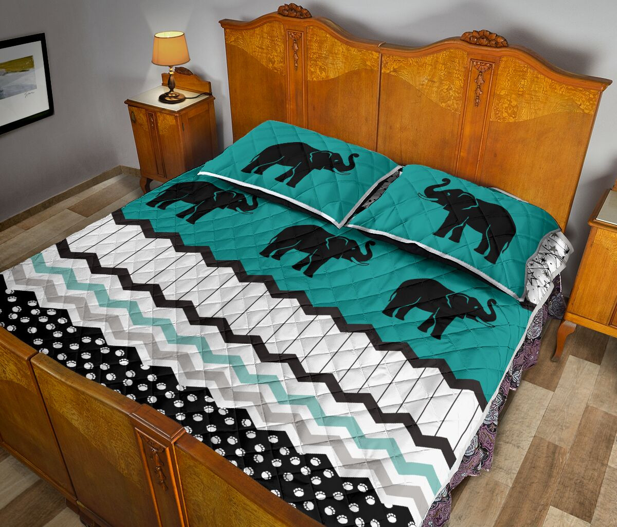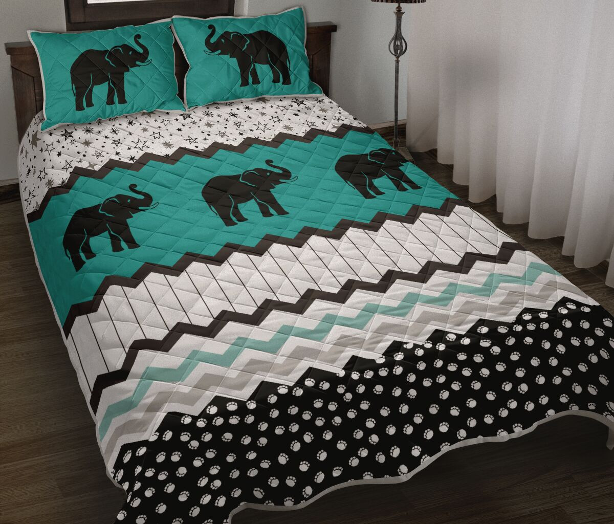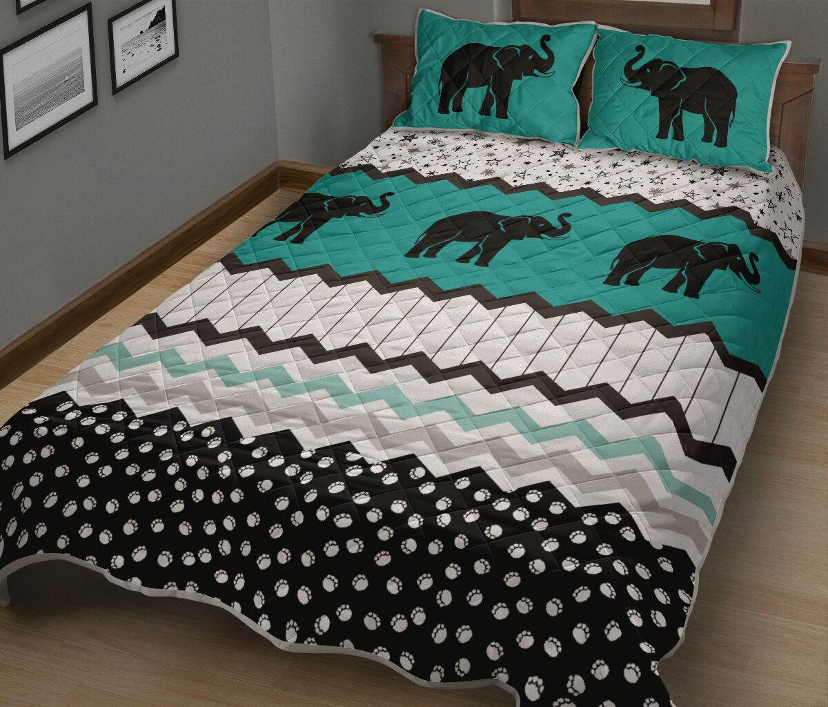 Elephants Footprint Pattern Quilt Bed Set