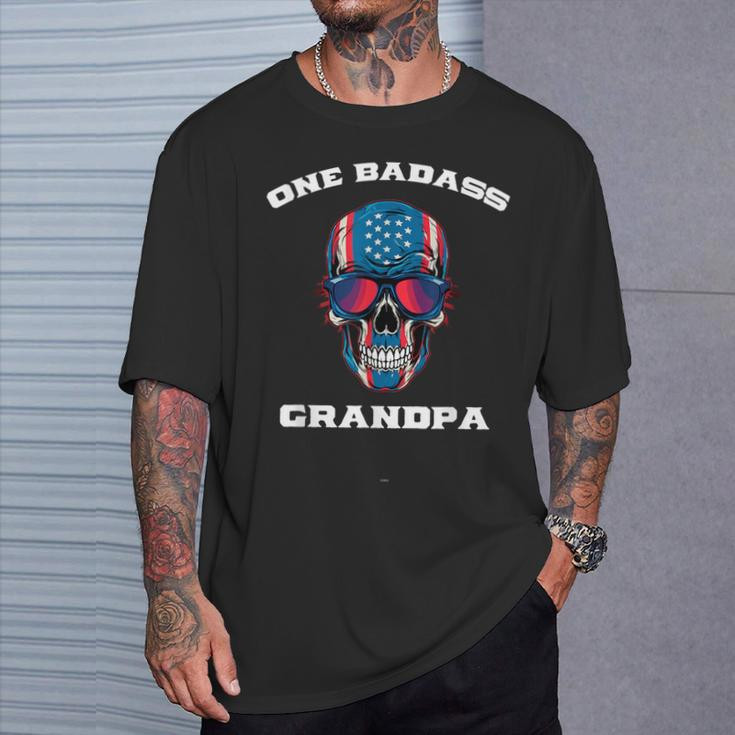 One Badass Grandpa Cool American Flag Us 4Th Of July Usa T-Shirt