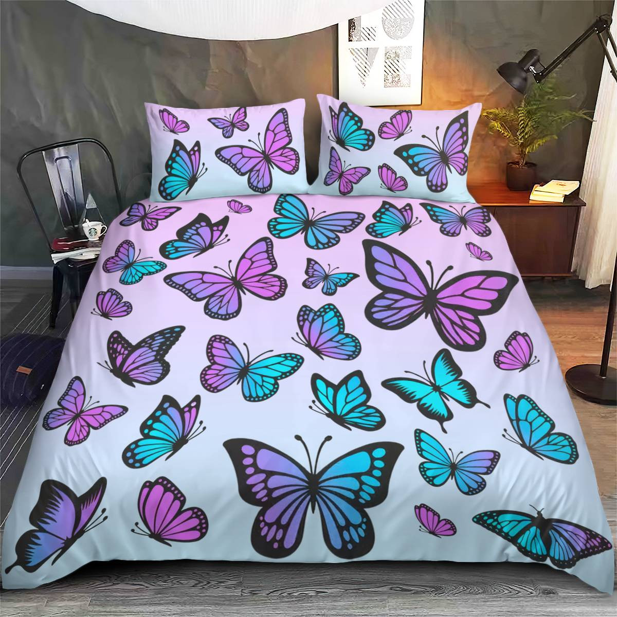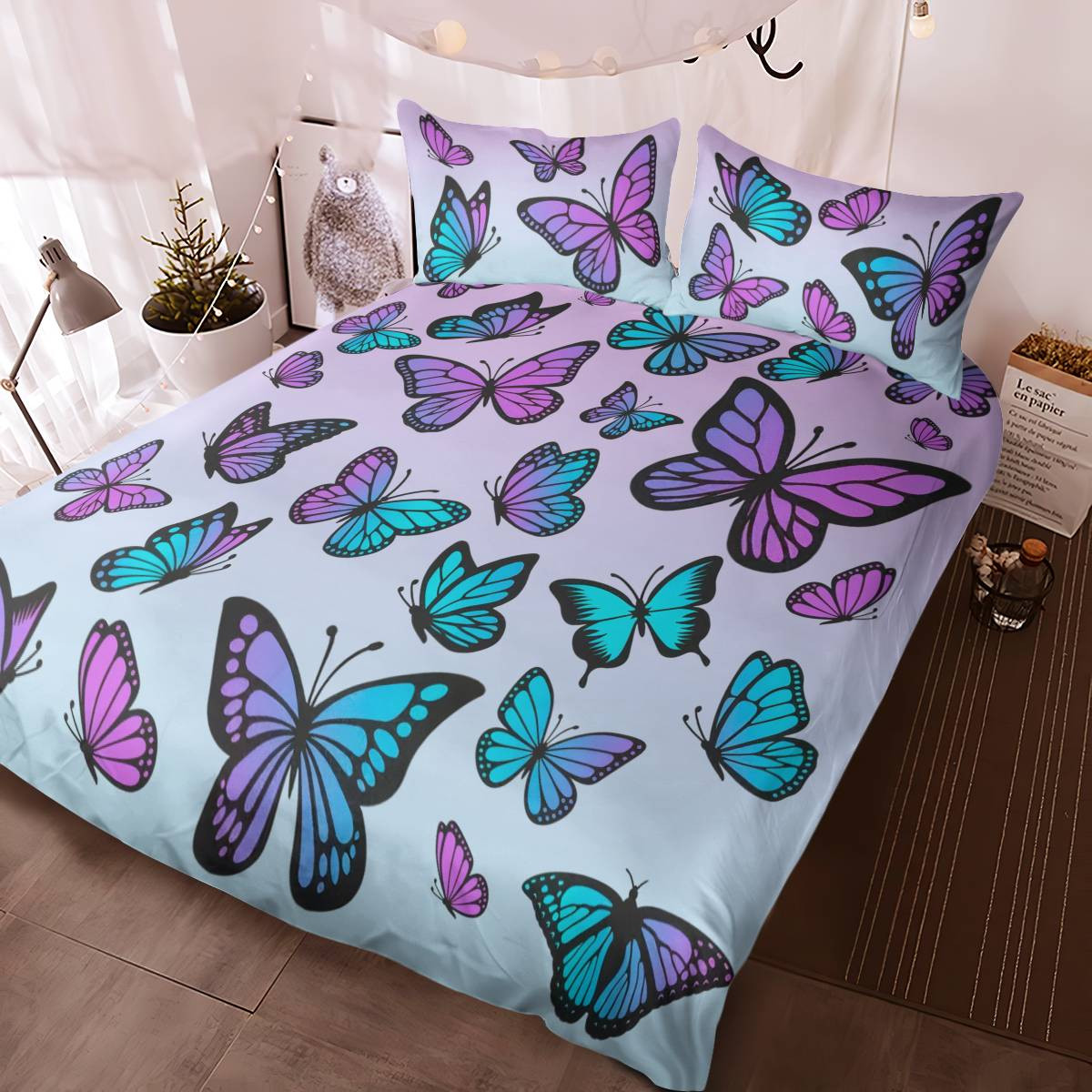 Pink And Purple Butterfly Bedding Set