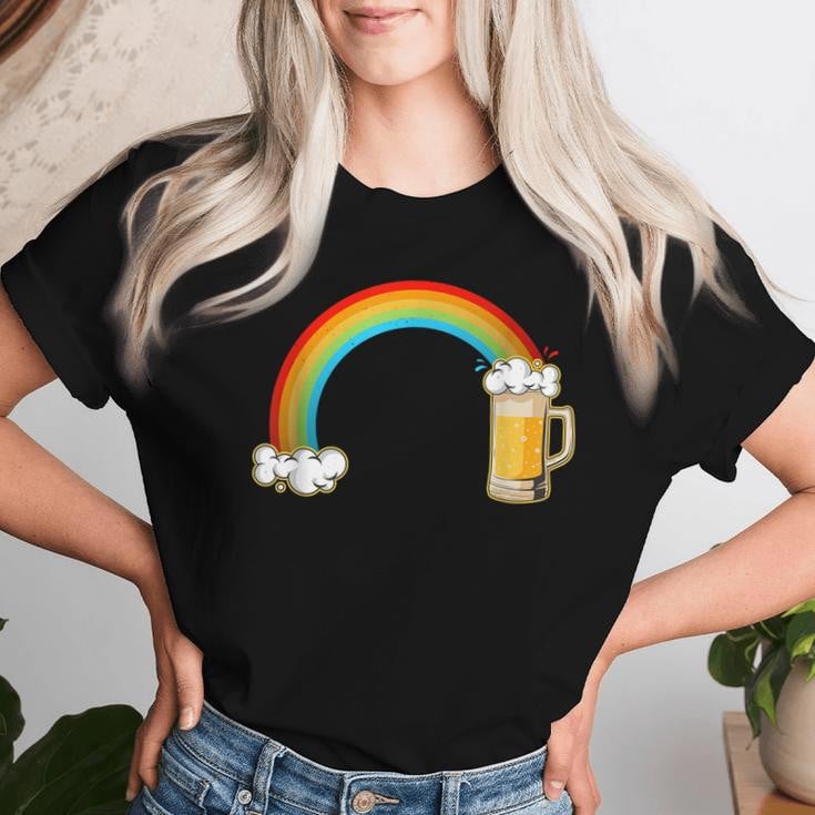 Rainbow Beer Lgbt Pride Gay Lesbian Beer Lover Drinking Women T-shirt