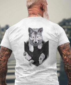 Wolf White Pup In Pocket Wolves Cool Wolf White Pup Men’s T-shirt Back Print