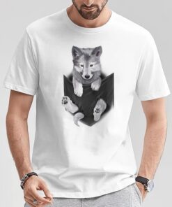 Wolf White Pup In Pocket Wolves Cool Wolf White Pup T-Shirt